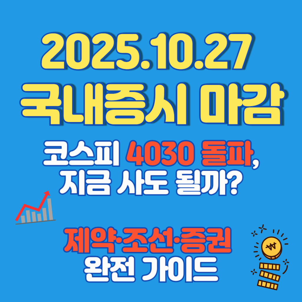 코스피가 장중 4030선을 넘기면서 투자 판단이 더 어려워졌어요. 어디까지 추세가 이어질지, 지금 들어가도 되는지, 어떤 업종을 먼저 봐야 할지 헷갈리기 쉬워요. 오늘은 강세로 지목된 제약바이오·조선·증권을 중심으로, 약세로 분류된 2차전지·정유·희토류까지 한 번에 정리해서 실전 실행 순서로 안내해 드릴게요.
